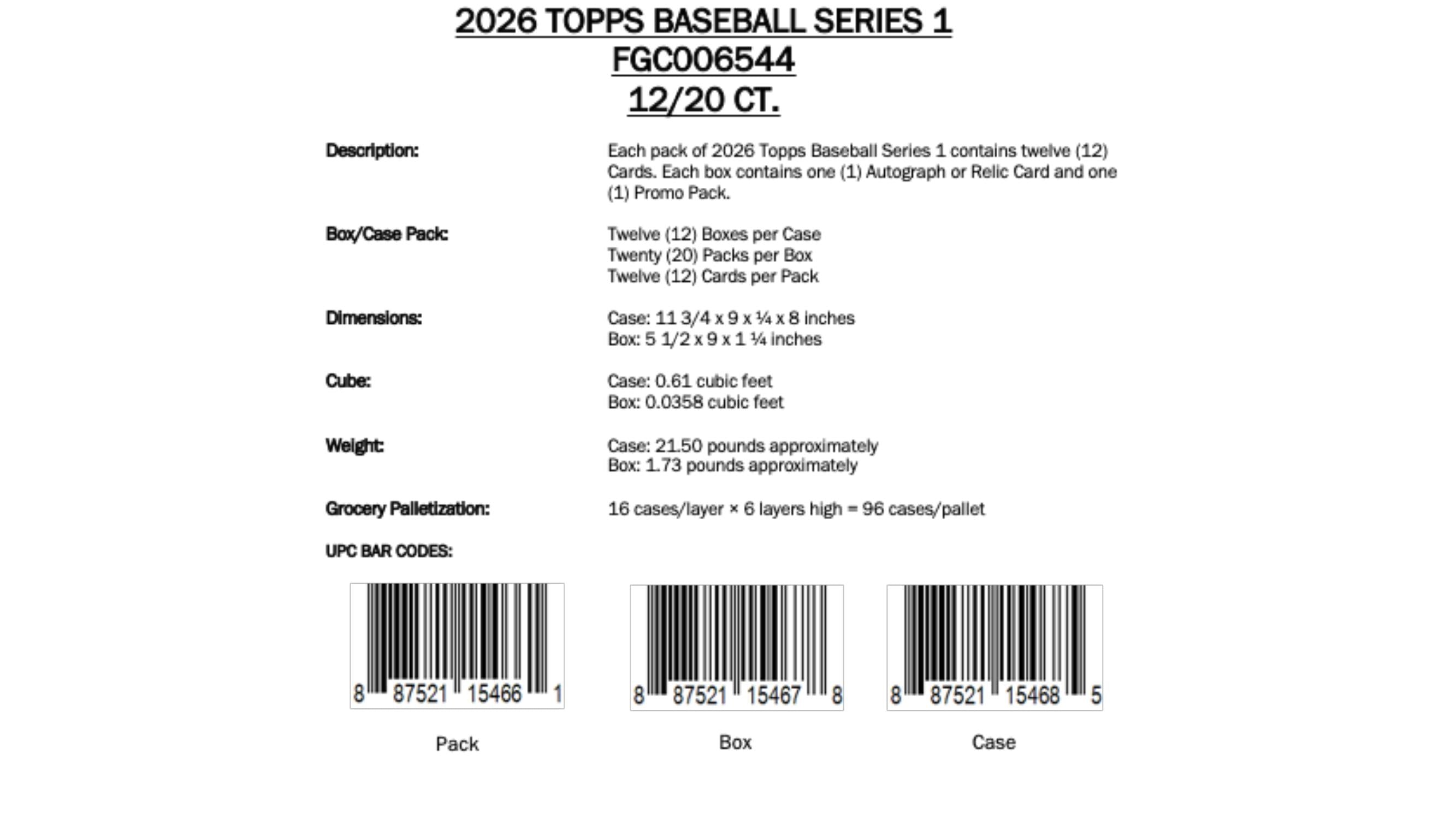 Topps MLB Baseball Series 1 2026 - Hobby Box indeholder: