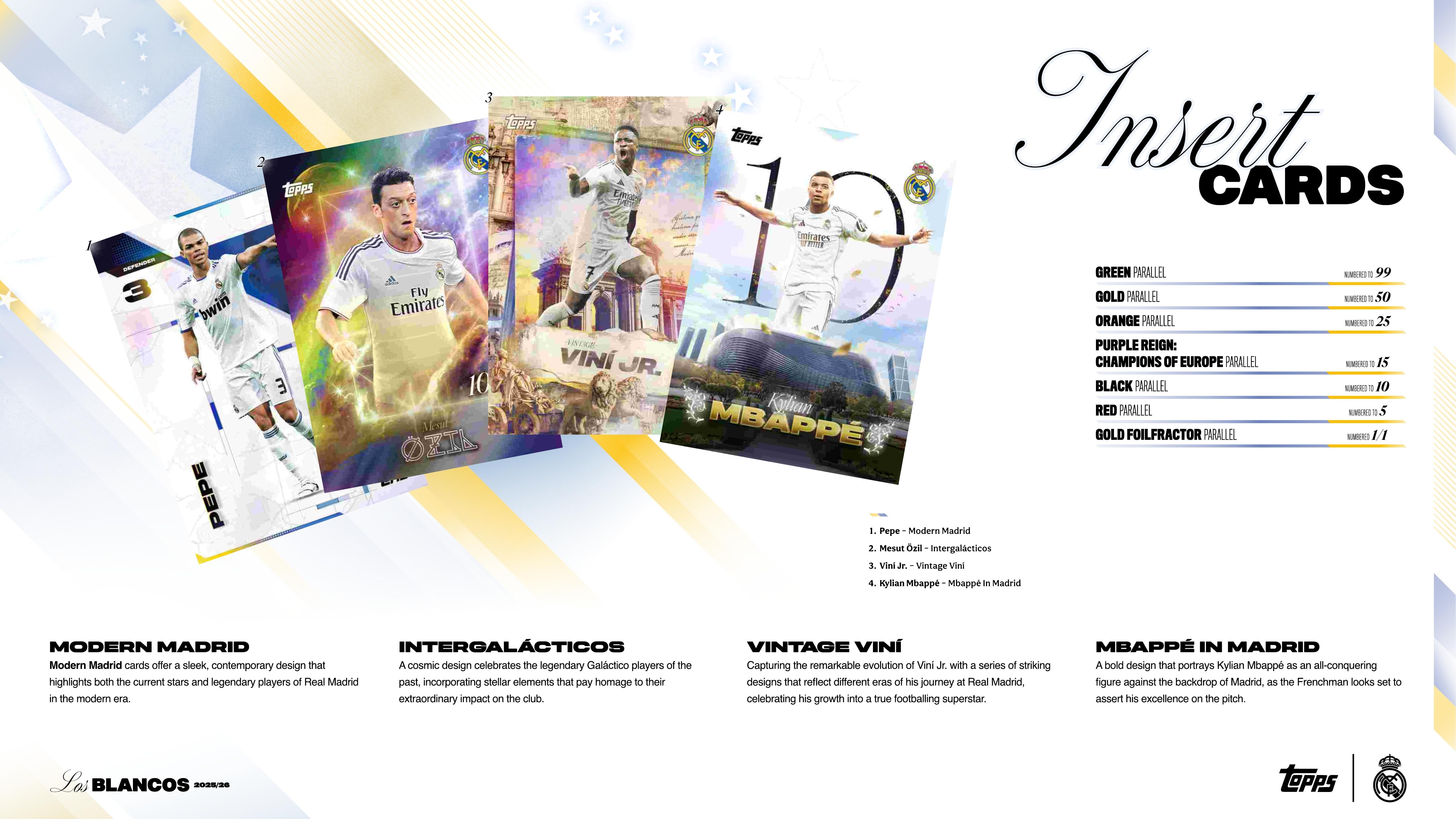 Topps Real Madrid Los Blancos 2025/26 indeholder: